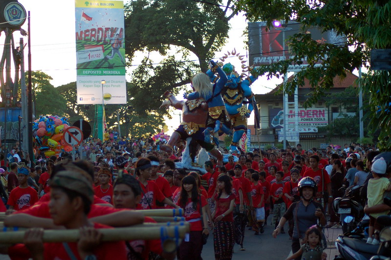 A Night before Nyepi (silent day) is Pengerupukan night, Ogoh-ogoh or Giant Effigies are paraded through out the city, almost on all Bali streets you can see this event once a year this year Nyepi Day falls in 23rd March.